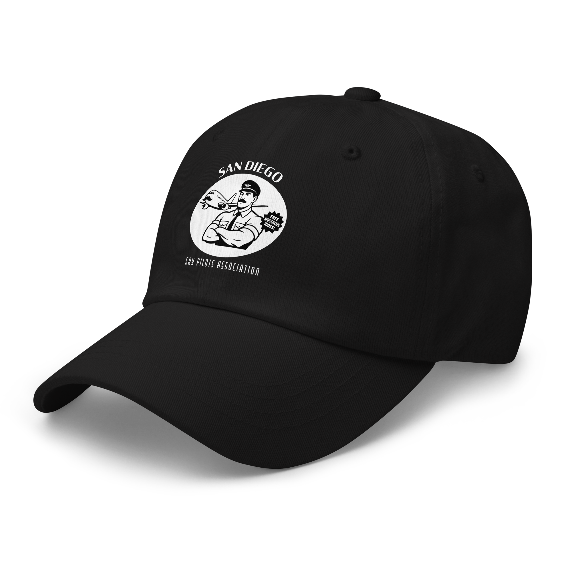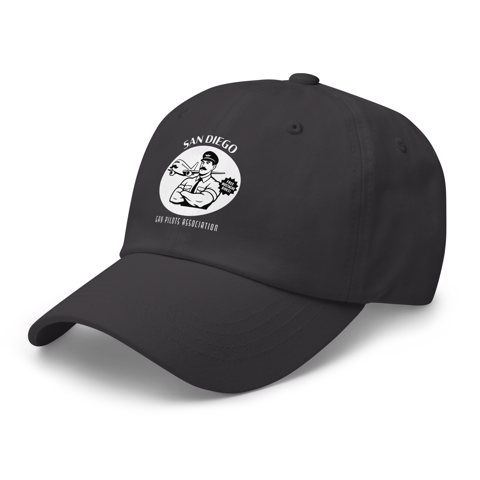 Gay Pilots Association Daddy Hat — White Graphic $19.00 Dad hats aren't just for dads. This one's got a low profile with an adjustable strap and curved visor. • 100% chino cotton twill • Green Camo color is 35% chino cotton twill, 65% polyester • Unstructured, 6-panel, low-profile • 6 embroidered eyelets • 3 ⅛” (7.6 cm) crown • Adjustable strap with antique buckle • Blank product sourced from Vietnam or Bangladesh Shop All Gay Clothing | T-Shirts, Tanks, Hats & More › Gay Pilots Association Daddy Hat — White Graphic Color: Black Navy Spruce Dark Grey White Add To Cart Added! Dad hats aren't just for dads. This one's got a low profile with an adjustable strap and curved visor. • 100% chino cotton twill • Green Camo color is 35% chino cotton twill, 65% polyester • Unstructured, 6-panel, low-profile • 6 embroidered eyelets • 3 ⅛” (7.6 cm) crown • Adjustable strap with antique buckle • Blank product sourced from Vietnam or Bangladesh