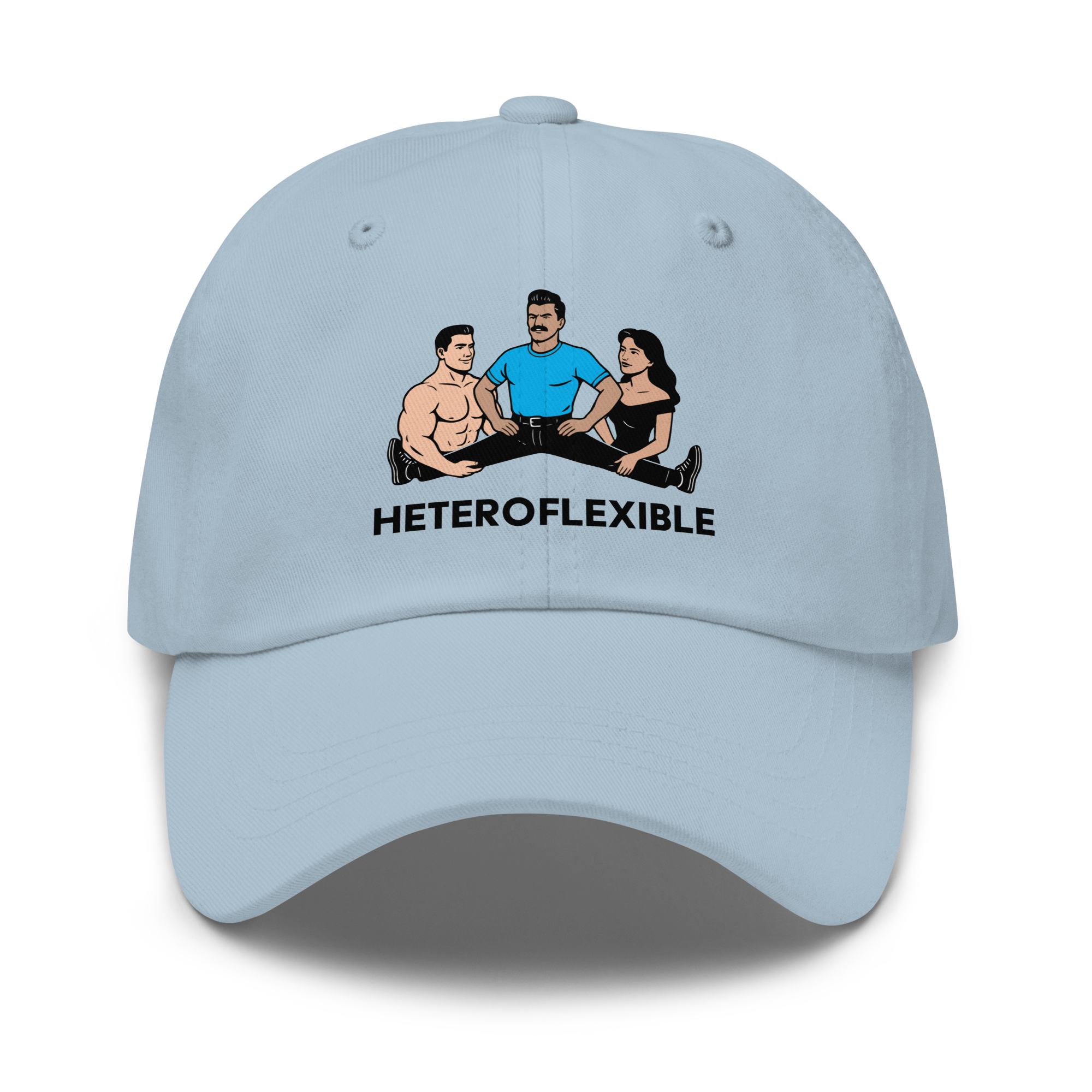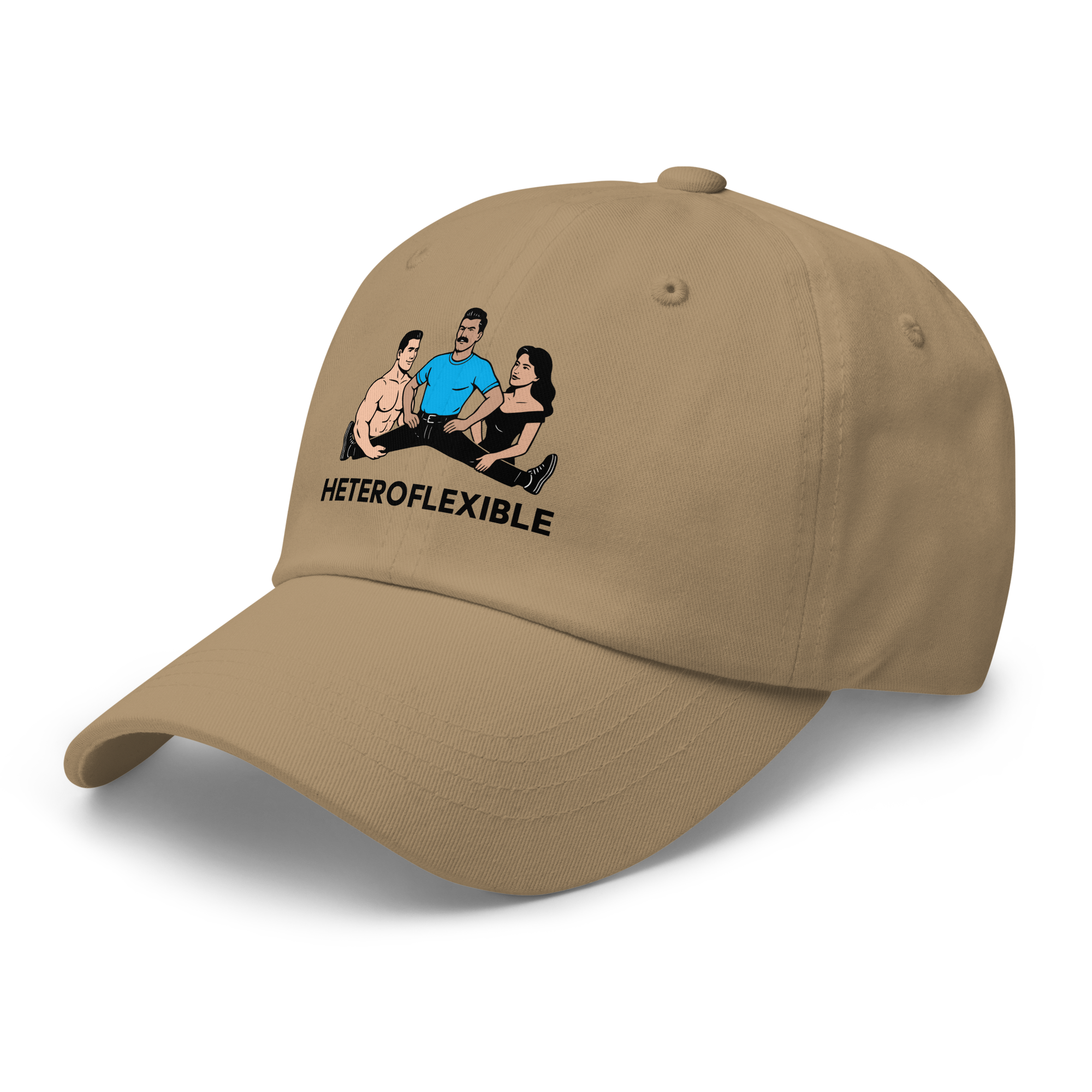 Heteroflexible Daddy Hat — Black Graphic $19.00 Dad hats aren't just for dads. This one's got a low profile with an adjustable strap and curved visor. • 100% chino cotton twill • Green Camo color is 35% chino cotton twill, 65% polyester • Unstructured, 6-panel, low-profile • 6 embroidered eyelets • 3 ⅛” (7.6 cm) crown • Adjustable strap with antique buckle • Blank product sourced from Vietnam or Bangladesh Shop All Gay Clothing | T-Shirts, Tanks, Hats & More › Heteroflexible Daddy Hat — Black Graphic Color: Khaki Stone Pink Light Blue White Add To Cart Added! Dad hats aren't just for dads. This one's got a low profile with an adjustable strap and curved visor. • 100% chino cotton twill • Green Camo color is 35% chino cotton twill, 65% polyester • Unstructured, 6-panel, low-profile • 6 embroidered eyelets • 3 ⅛” (7.6 cm) crown • Adjustable strap with antique buckle • Blank product sourced from Vietnam or Bangladesh