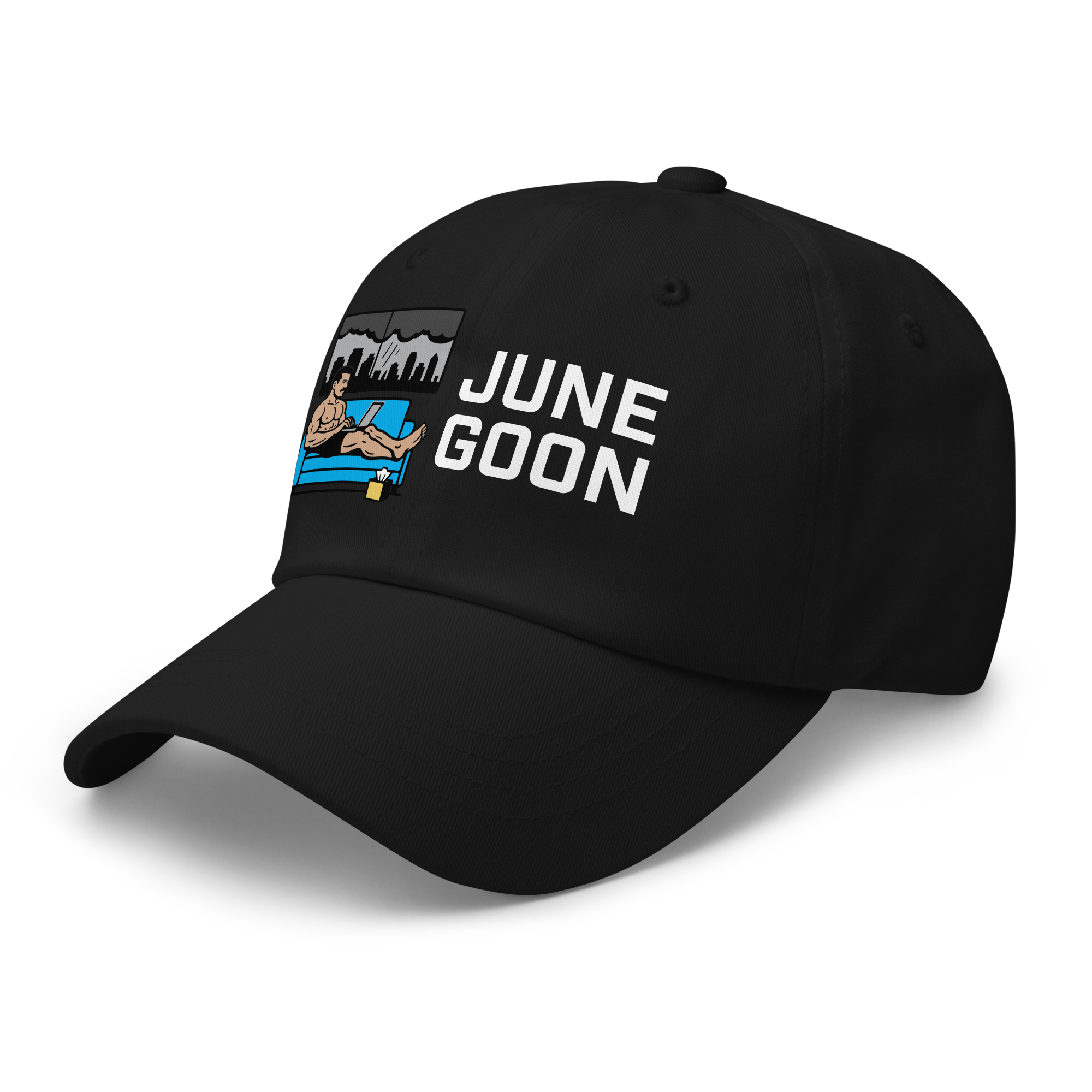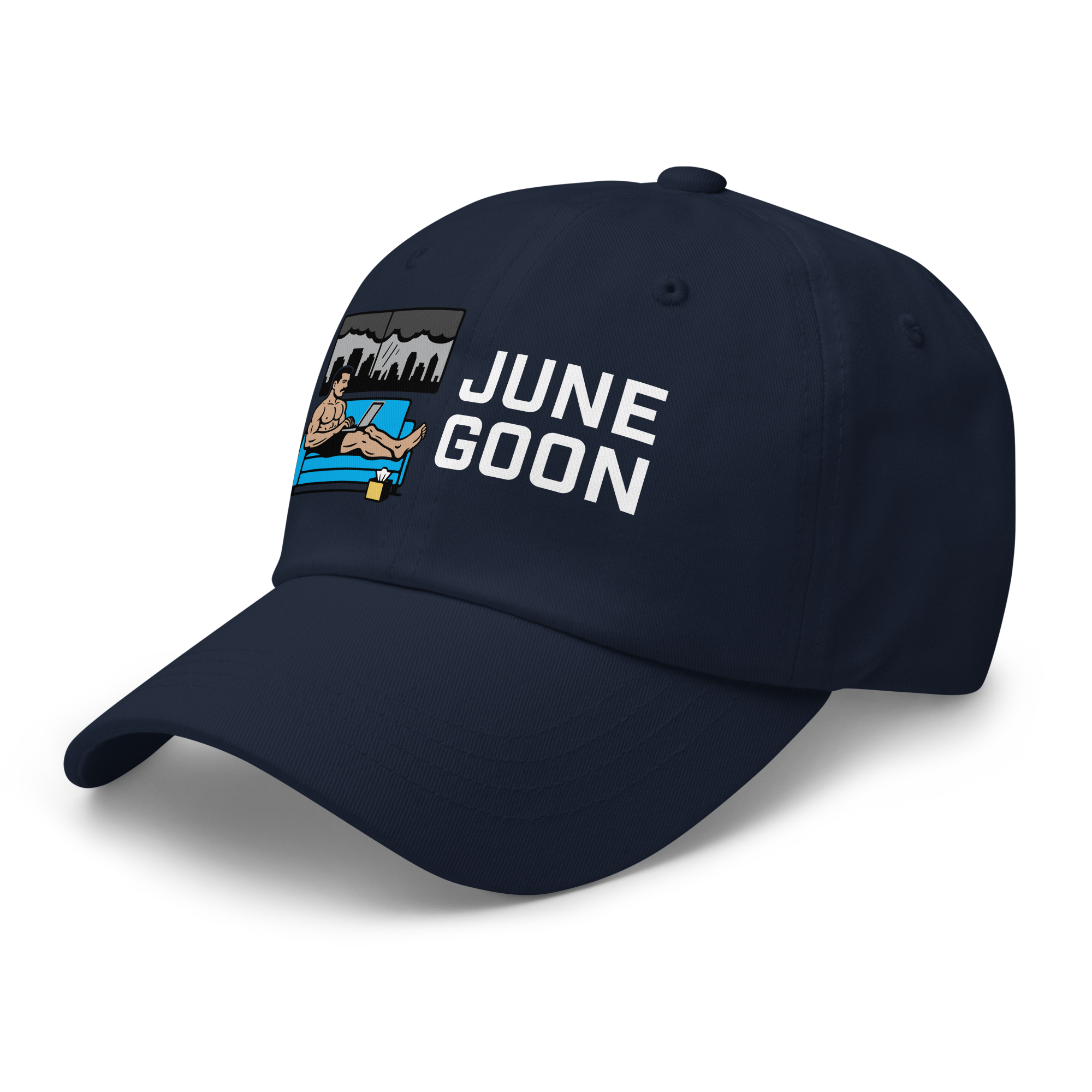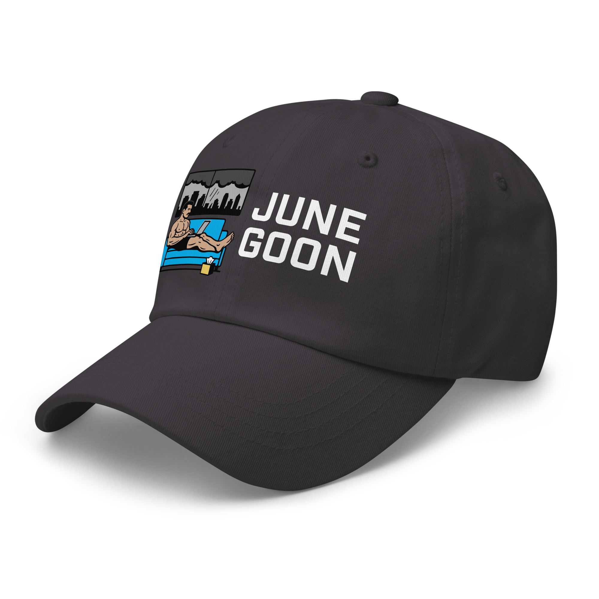 June Goon Daddy Hat — White Graphic $19.00 Dad hats aren't just for dads. This one's got a low profile with an adjustable strap and curved visor. • 100% chino cotton twill • Green Camo color is 35% chino cotton twill, 65% polyester • Unstructured, 6-panel, low-profile • 6 embroidered eyelets • 3 ⅛” (7.6 cm) crown • Adjustable strap with antique buckle • Blank product sourced from Vietnam or Bangladesh Shop All Gay Clothing | T-Shirts, Tanks, Hats & More › June Goon Daddy Hat — White Graphic Color: Black Navy Spruce Dark Grey Add To Cart Added! Dad hats aren't just for dads. This one's got a low profile with an adjustable strap and curved visor. • 100% chino cotton twill • Green Camo color is 35% chino cotton twill, 65% polyester • Unstructured, 6-panel, low-profile • 6 embroidered eyelets • 3 ⅛” (7.6 cm) crown • Adjustable strap with antique buckle • Blank product sourced from Vietnam or Bangladesh