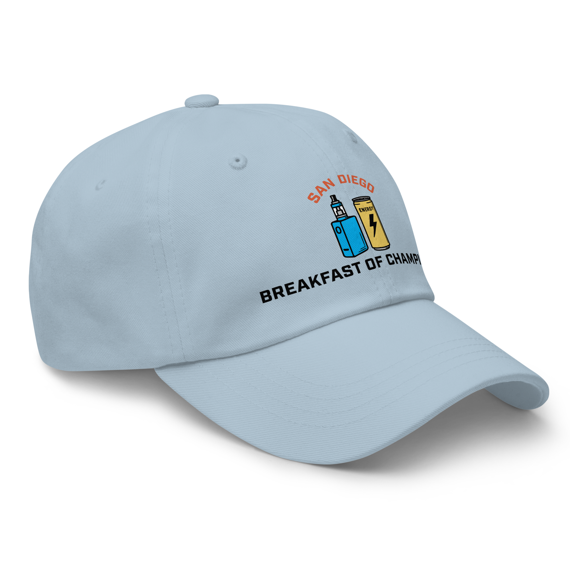 San Diego Breakfast of Champions Daddy Hat — Black Graphic $19.00 Dad hats aren't just for dads. This one's got a low profile with an adjustable strap and curved visor. • 100% chino cotton twill • Green Camo color is 35% chino cotton twill, 65% polyester • Unstructured, 6-panel, low-profile • 6 embroidered eyelets • 3 ⅛” (7.6 cm) crown • Adjustable strap with antique buckle • Blank product sourced from Vietnam or Bangladesh Shop All Gay Clothing | T-Shirts, Tanks, Hats & More › San Diego Breakfast of Champions Daddy Hat — Black Graphic Color: Stone Light Blue White Add To Cart Added! Dad hats aren't just for dads. This one's got a low profile with an adjustable strap and curved visor. • 100% chino cotton twill • Green Camo color is 35% chino cotton twill, 65% polyester • Unstructured, 6-panel, low-profile • 6 embroidered eyelets • 3 ⅛” (7.6 cm) crown • Adjustable strap with antique buckle • Blank product sourced from Vietnam or Bangladesh